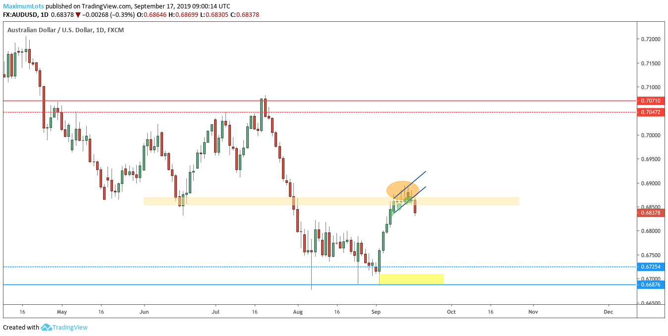Looking at the charts, from a daily and weekly perspective the trend is clearly down. Price retrace to previous weekly support which was likely due to turn to resistance given how price initially broke through the level.