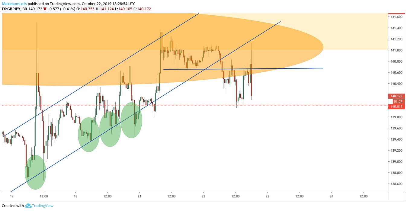 Sure enough, the ascending channel broke, we had a retest and there was a short opportunity with the 30m trend.