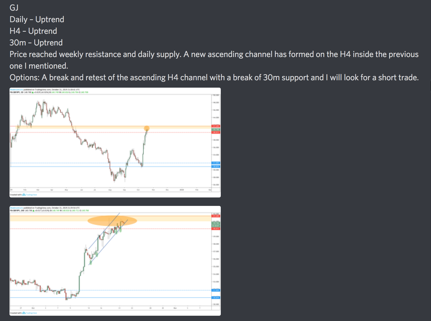 GJ rallied up over 1000 pips in it's most recent bullish push and it hit a level I was interested in being supply and resistance.
